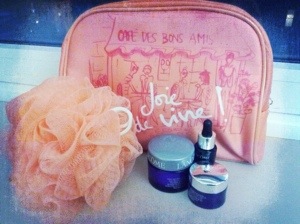 Today, the nurses organized a mini Lancôme makeover party. We received samples of products, a cute makeup bag and a shower sponge. They served yummy petit fours and sparkling pink lemonade in little champagne flutes. It’s like a cruise around here. But seriously, these amazing nurses make it worthwhile.